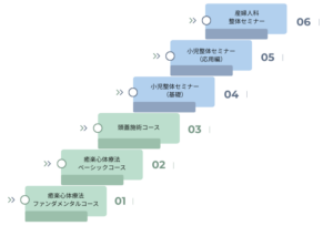 癒楽心体療法・ベーシックコース受講後は、バイオメカニクス(生体力学)や構造を理解し、全体性のケアの基本を学ぶことができる「小児整体セミナー(基礎)」を受講していただきます。体の構造をしっかり学んでいただき、高い技術を身につけていただきます。